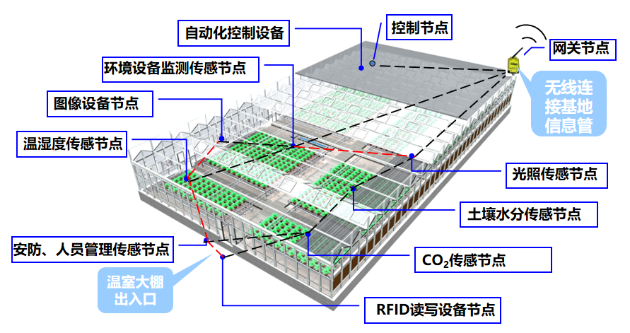 各功能传感节点可根据蔬菜种类、种植面积的不同,进行相关数量和布署位置的调整。