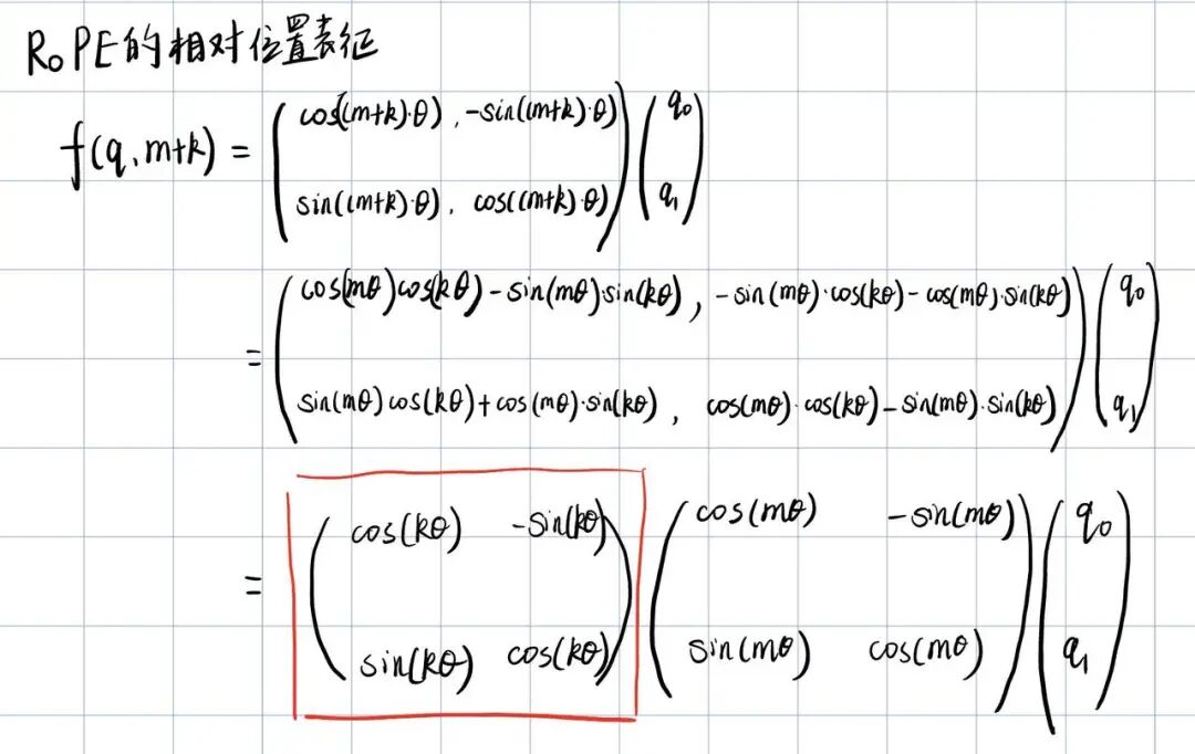 (这个转换矩阵和前面Sinusoidal位置编码那一节,我们做其相对位置变换的时候算出那个转换矩阵是不是很像!)