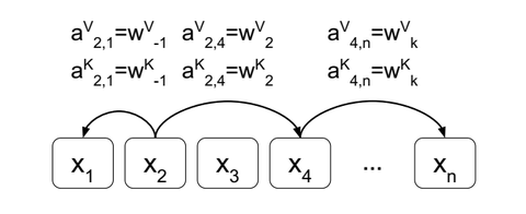 相对位置编码的取值示例,图源论文Self-Attention with Relative Position Representations