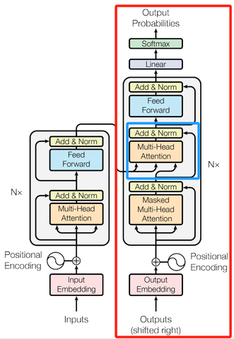 Transformer原始架构,红框是decoder部分,图源论文《Attention Is All You Need》
