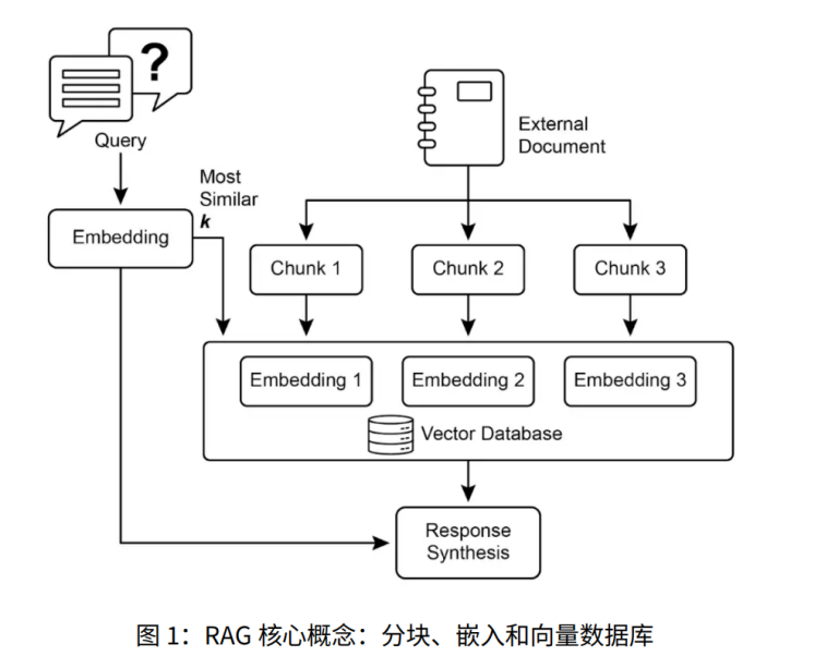 为什么:RAG 模式通过连接 LLM 与外部知识源,提供标准化解决方案。收到查询后系统先从指定知识库检索相关信息片段,再将这些片段附加到原始提示,丰富上下文最后送入 LLM,生成准确、可验证、基于外部数据的响应。此过程让 LLM 从“闭卷”推理者变为“开卷”推理者,显著提升实用性和可信度。