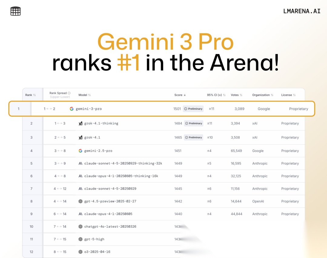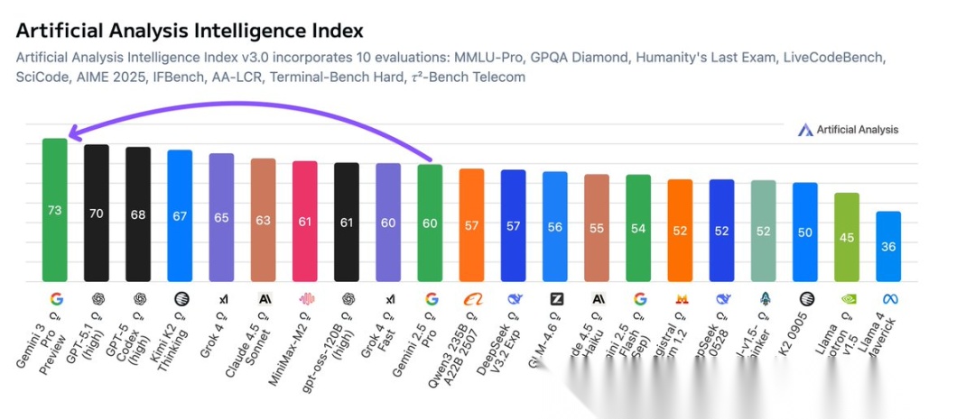 但Gemini 3的出现,把原本胶着的战争直接变成了断层式的碾压。
