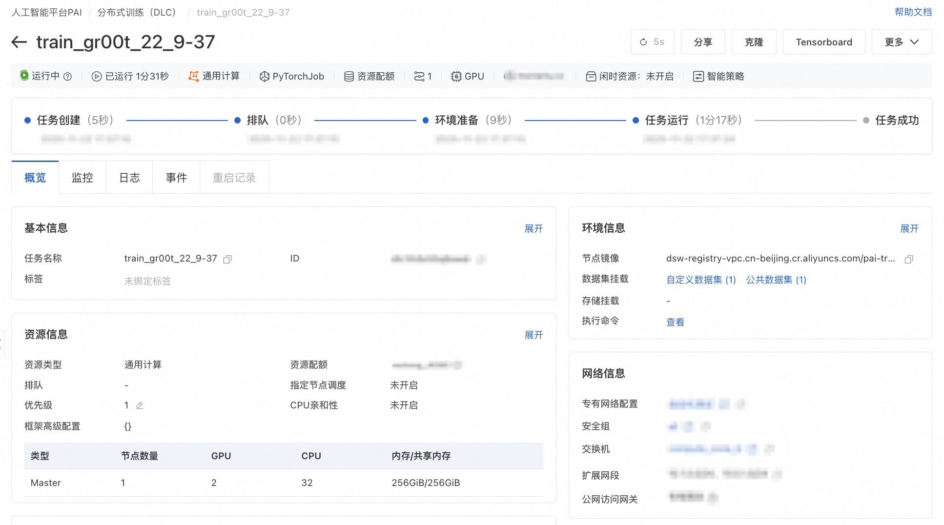 --num-gpus 2 代表使用2张GPU作为训练资源,这里可以根据自己的资源配额余量自行调节
