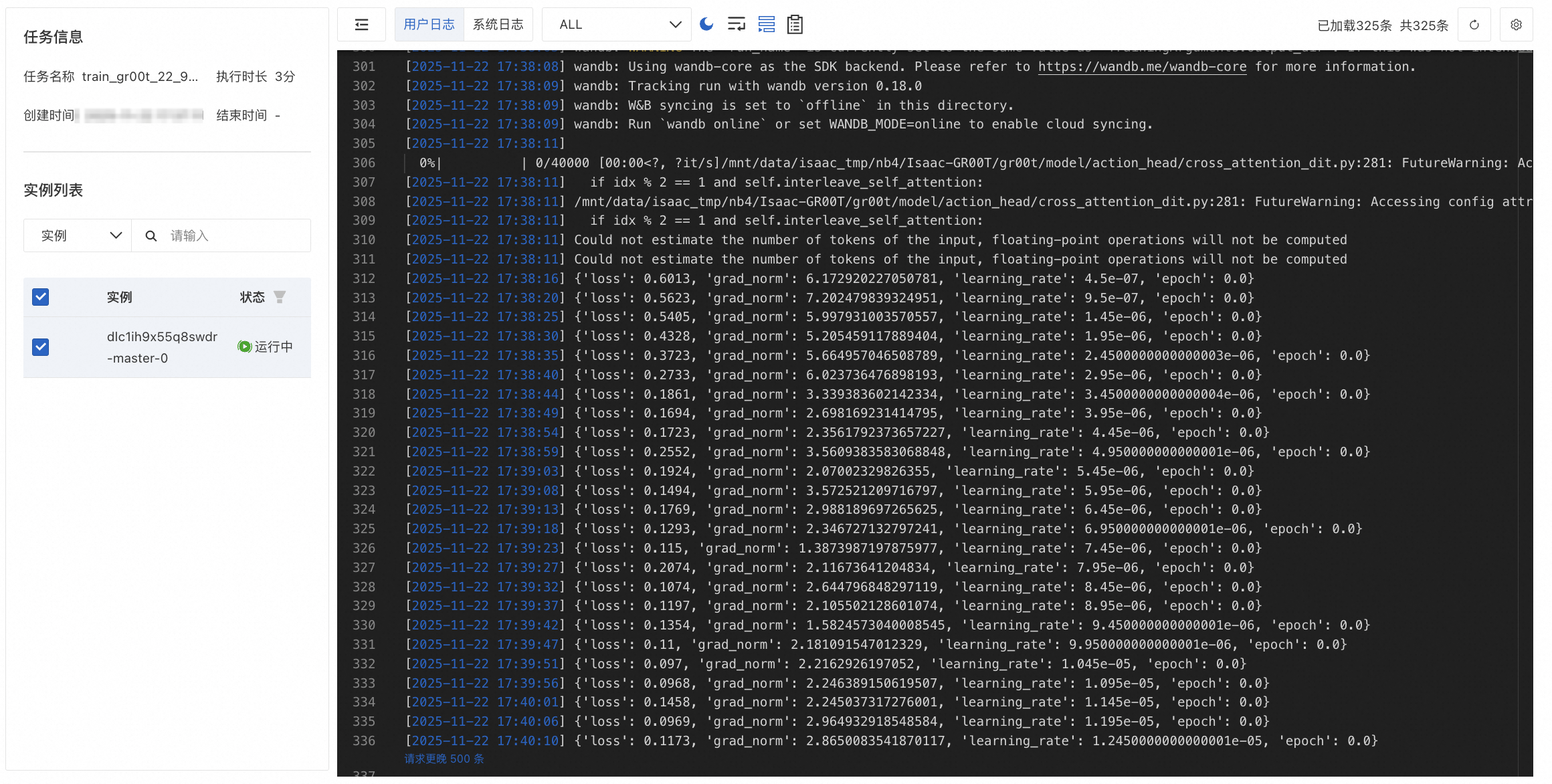 我们可以直接在DLC中启动分布式模仿学习任务: