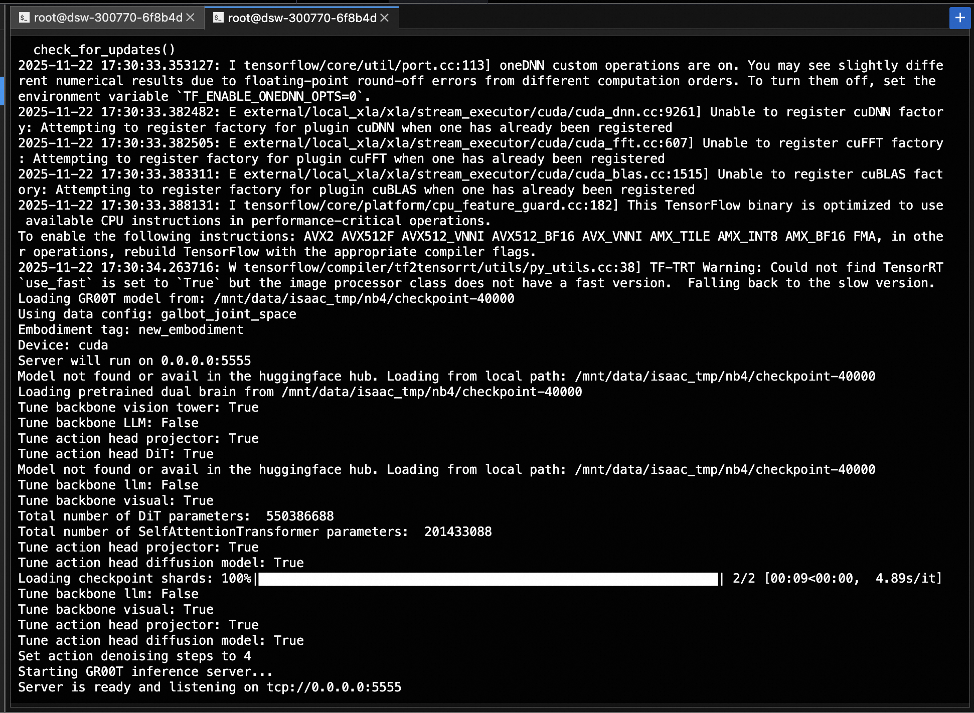 在服务端DSW中启动GR00T-N1.5模型服务: