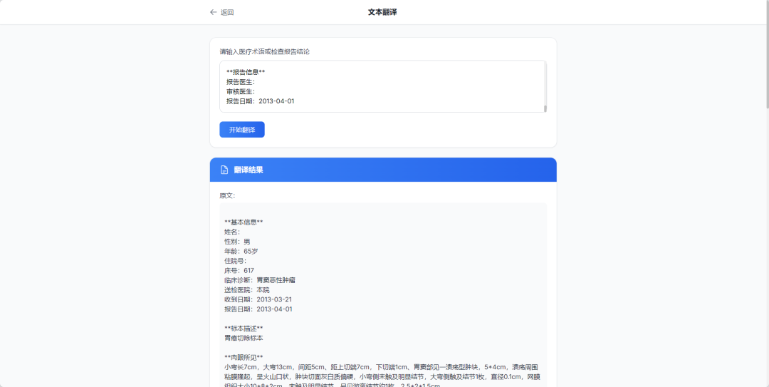 随着大语言模型技术的突破,AI为解决这一痛点提供了新可能。本项目旨在构建智能医疗报告翻译官应用,通过先进AI模型将专业医学术语转化为生活化语言,为患者提供即时、准确、易懂的报告解读服务,让专业医学知识变得触手可及。
