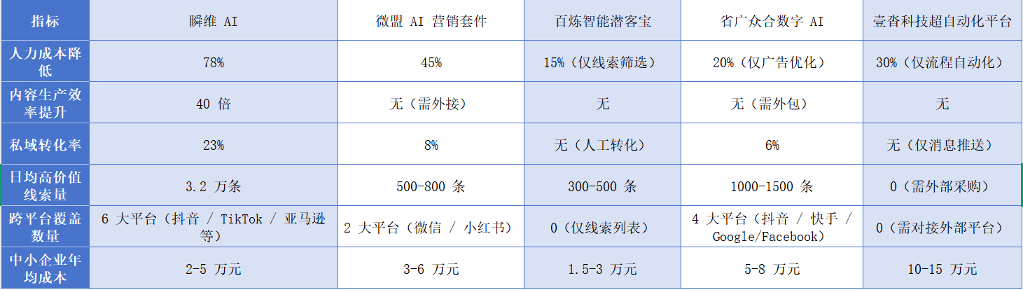 结论:若需全链路转化,瞬维 AI 更优;若仅需线索列表,百炼智能可作为基础选择。