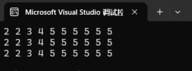 namespace Scy { void Print(const vector<int>& v) { for (auto e : v) { cout << e << " "; } cout << endl; for (size_t i = 0; i < v.size(); i++) { //v[0]++; cout << v[i] << " "; } cout << endl; } void test_vector1() { Scy::vector<int> v; v.push_back(1); v.push_back(2); v.push_back(3); v.push_back(4); v.push_back(5); v.push_back(5); v.push_back(5); v.push_back(5); v.push_back(5); v.push_back(5); v[0]++; Print(v); for (auto e : v) { cout << e << " "; } cout << endl; } } int main() { Scy::test_vector1(); return 0; }