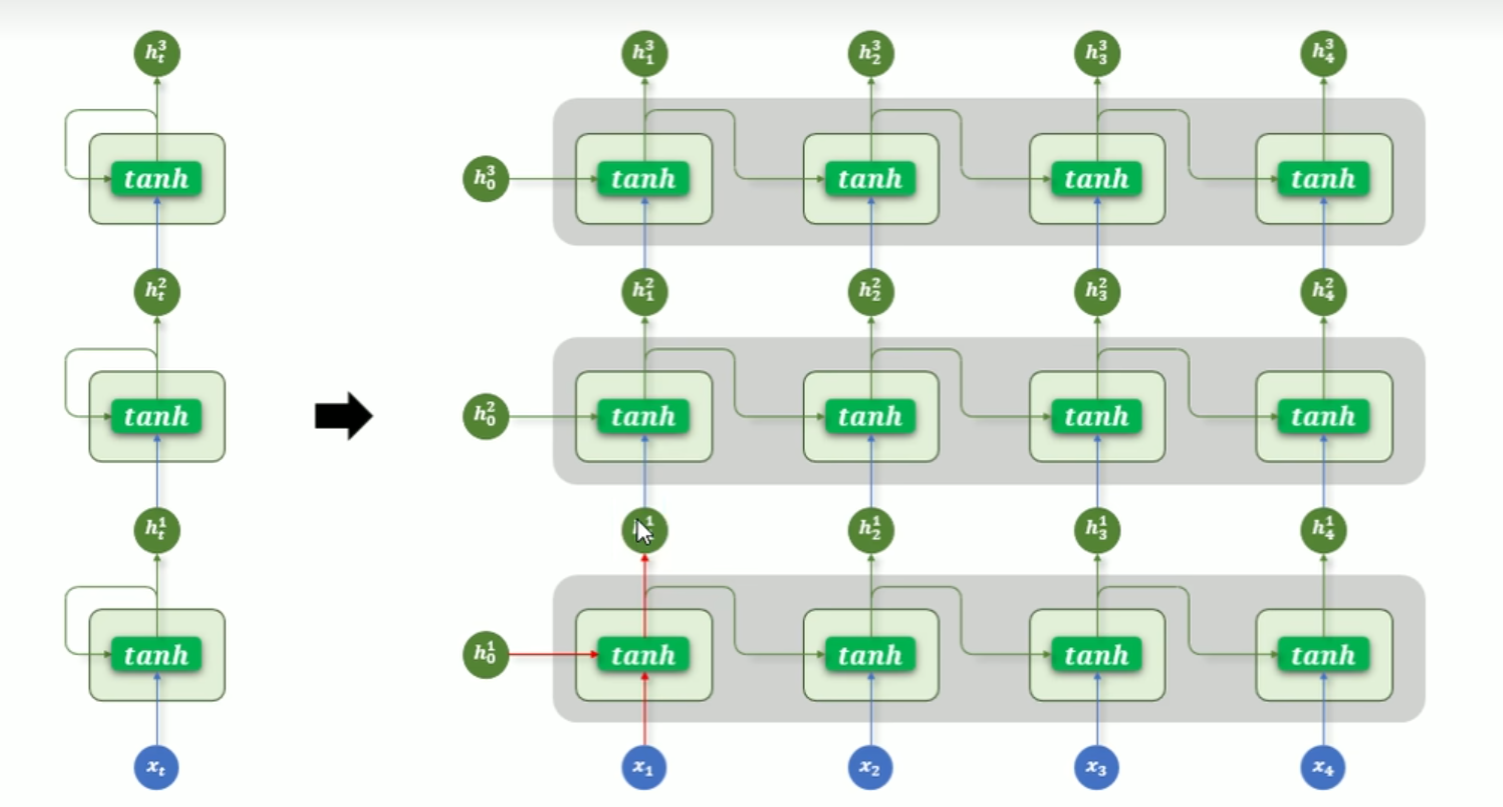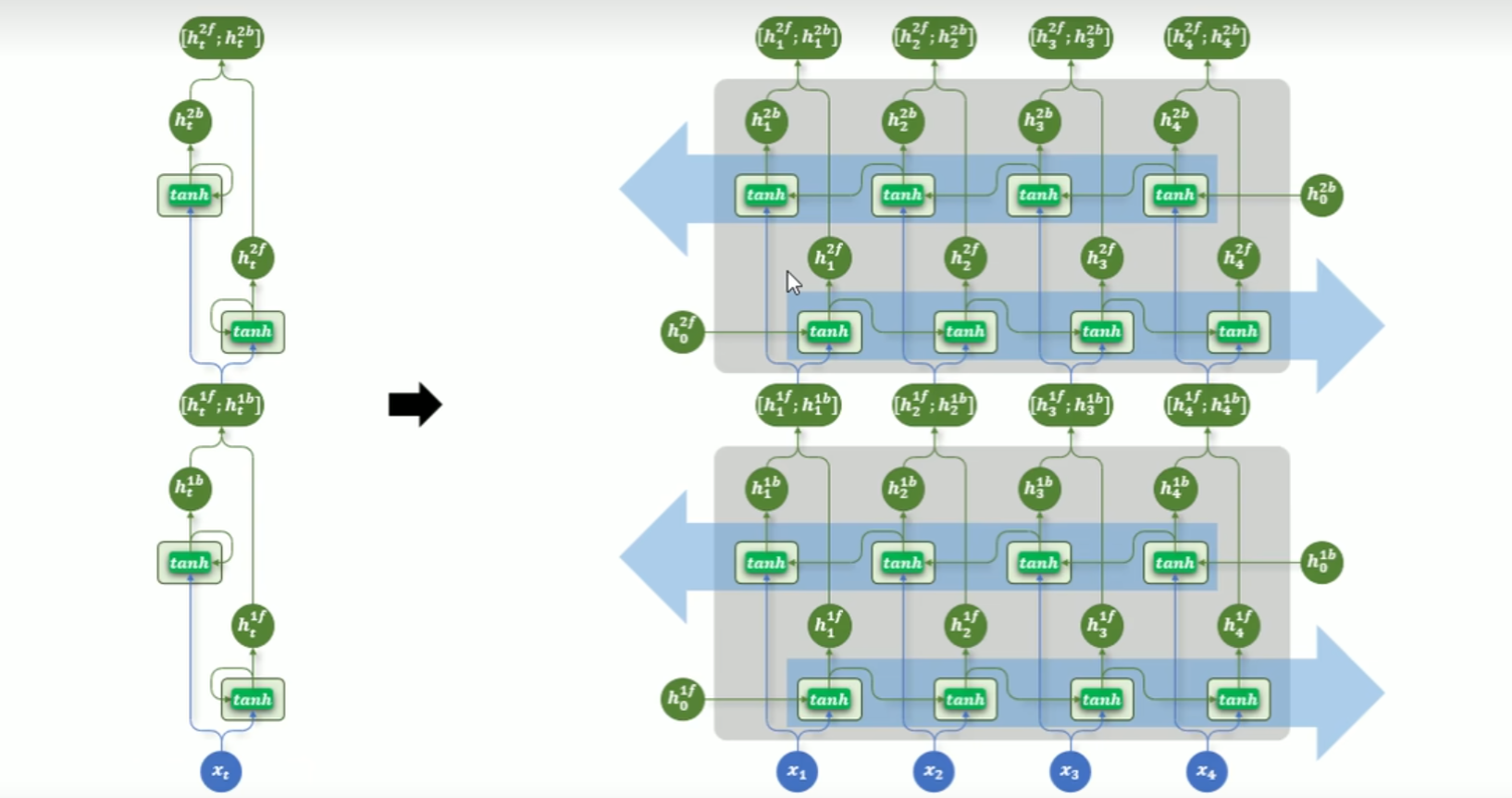 多层RNN结果,每一层的输出序列会作为下一层的输入序列。