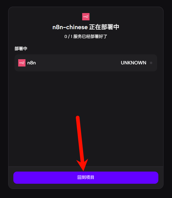 右侧能看到有一个 n8n 的服务,这时候红框位置还是启动中,观察这个状态变为“运行中”以后点击下面图片红色箭头所指的的链接。