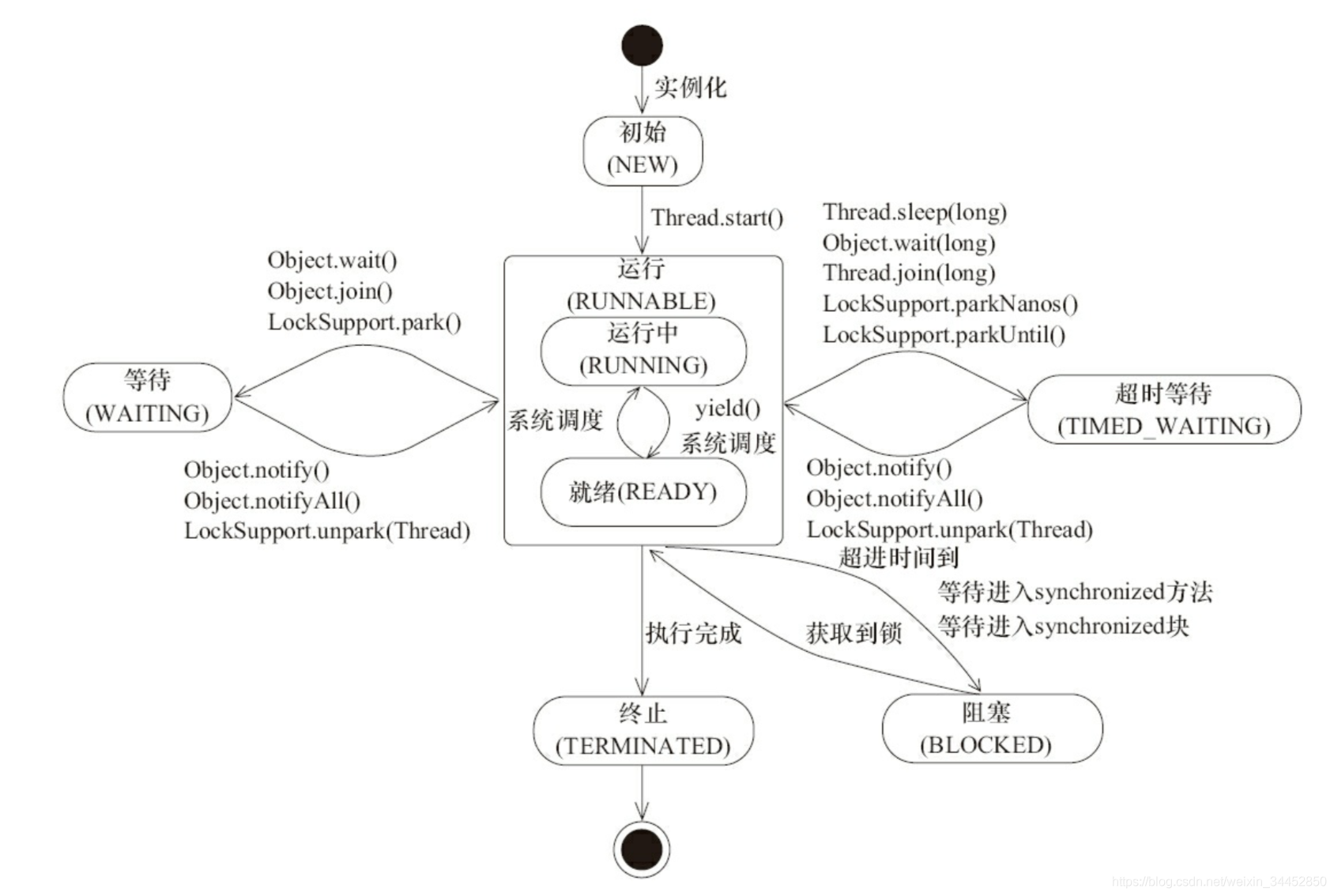 JAVA线程的状态(生命周期)及其变化关系