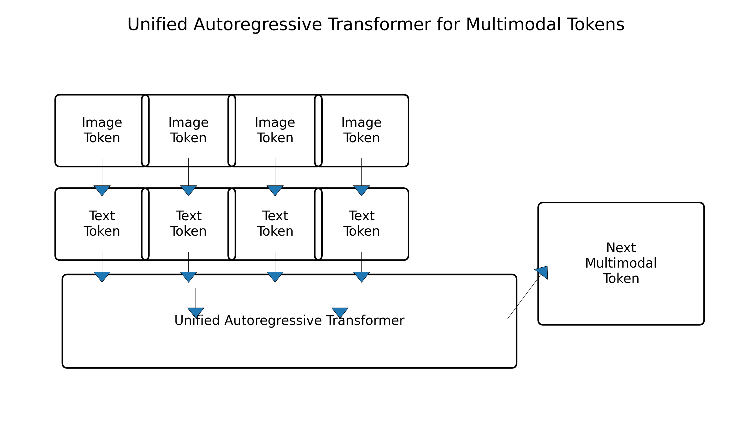 图5:统一自回归 Transformer 处理多模态 token 序列的示意