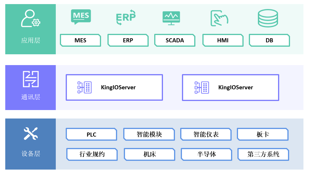 采用KingIOServer、KingSCADA、KingHistorian、KingPortal四层架构,支持全厂多类型设备的数据采集、实时监控与历史存储,系统依托设备数据采集,实现设备运行状态实时优化,减少非计划停机,保障生产连续性,实现设备效率提升。