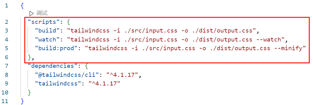 package.json 为 Tailwind CSS v4 项目设置。