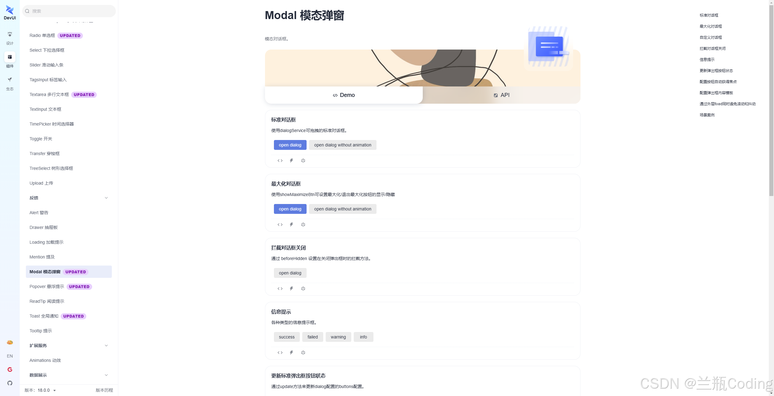在中后台里,「弹窗滥用」很常见。DevUI 提供了 Modal、Drawer、Toast、Notification 等反馈组件。
