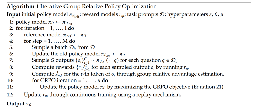 GRPO最初在 DeepSeekMath 中提出,用于提升模型在开放域数学问题上的推理能力,后扩展至 DeepSeek-R1 等通用推理模型。结合LoRA(低秩适配)技术,GRPO可在消费级GPU上微调小模型,降低了RLHF门槛。