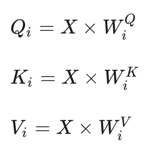 对于第 i 个头(比如第 1 个头),我们有专属的权重矩阵: