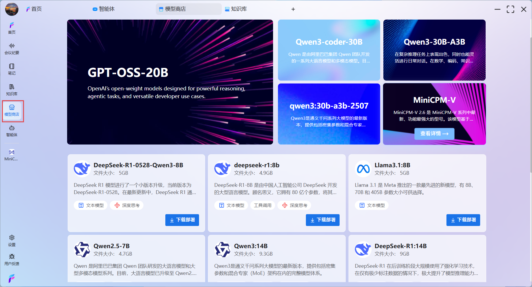 步骤 2:打开 FlowyAIPC → 进入「模型商店」