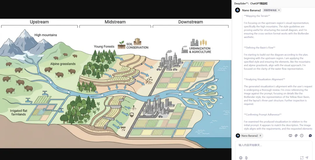 DeepSider是一款浏览器插件,安装到浏览器后,国内也可以直接访问Nano Banana 2/Gemini3.0/GPT-5.1等等几十款AI大模型。Nano Banana 2不仅会自动推理,思考用户给出的提示词,还会自动补完用户的深层次需求,并根据自己的最新知识库进行填充。所以说,通过Nano Banana 2来画科研配图、技术路线图、教学插画、儿童绘本、电商配图等等,完全不在话下。你可以一