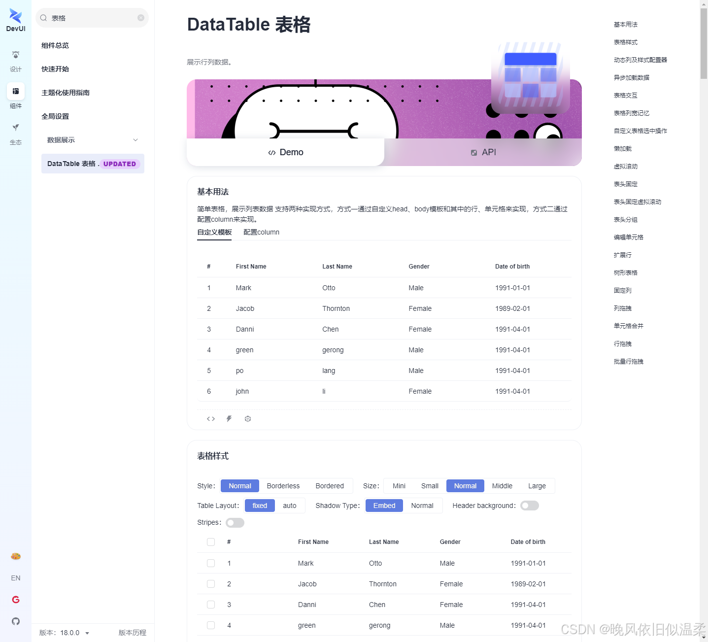 DevUI 数据表格组件支持分页、排序、筛选、固定列、复杂表头、虚拟滚动等能力,用于支撑大量业务数据的展示与操作。在云原生场景里,可以将表格理解成一个“小型运营工作台”: