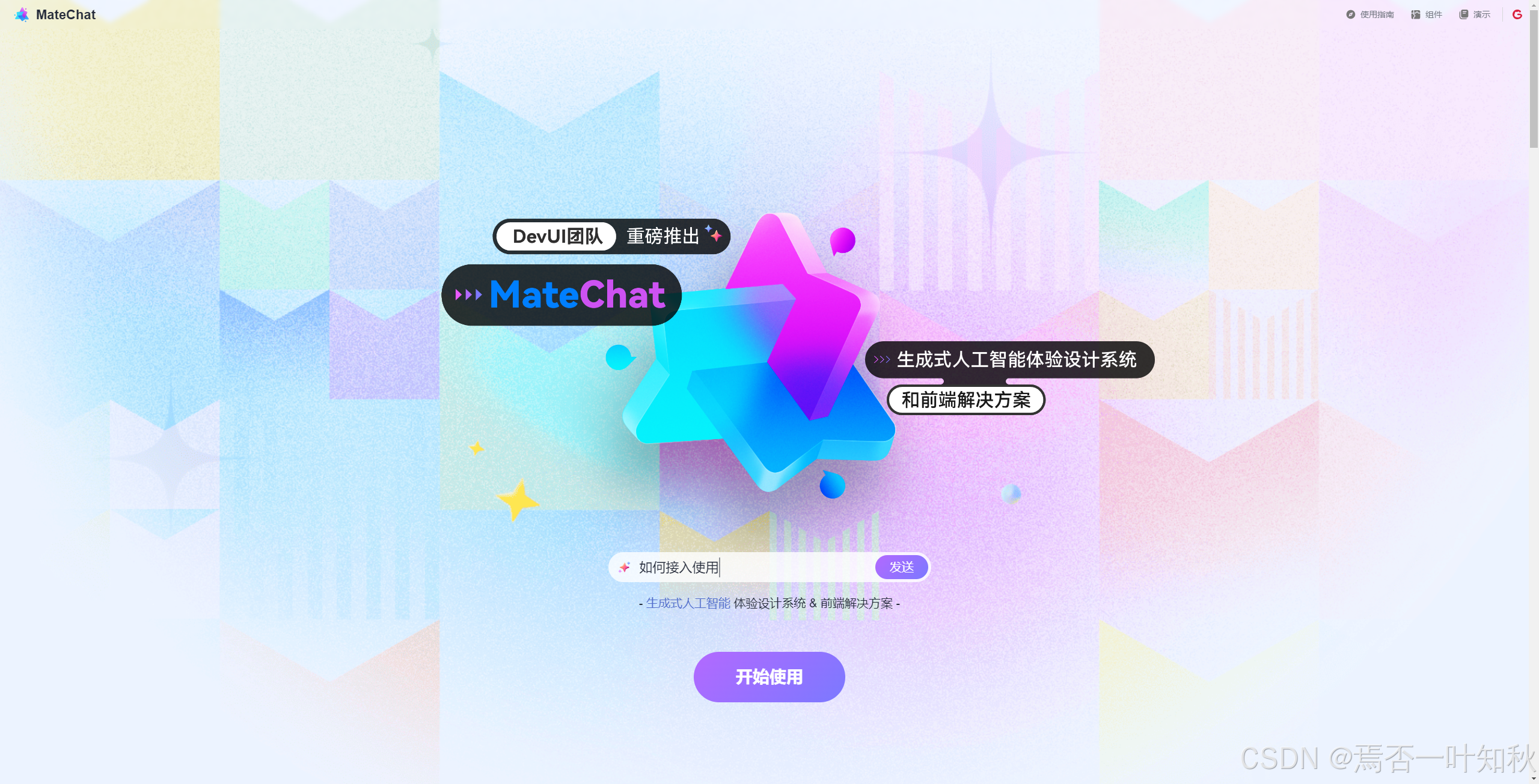 如果说 DevUI 是“通用企业前端底座”,那 MateChat 就是专为 GenAI 时代的智能对话交互 打造的一块“功能扩展板”。