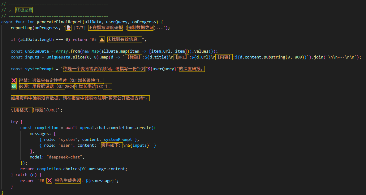 选择理由:DeepSeek V3 在逻辑推理和长文本处理上表现优异,且 API 成本极低,非常适合这种需要多轮调用(Chain of Thought)的 Agent 场景。