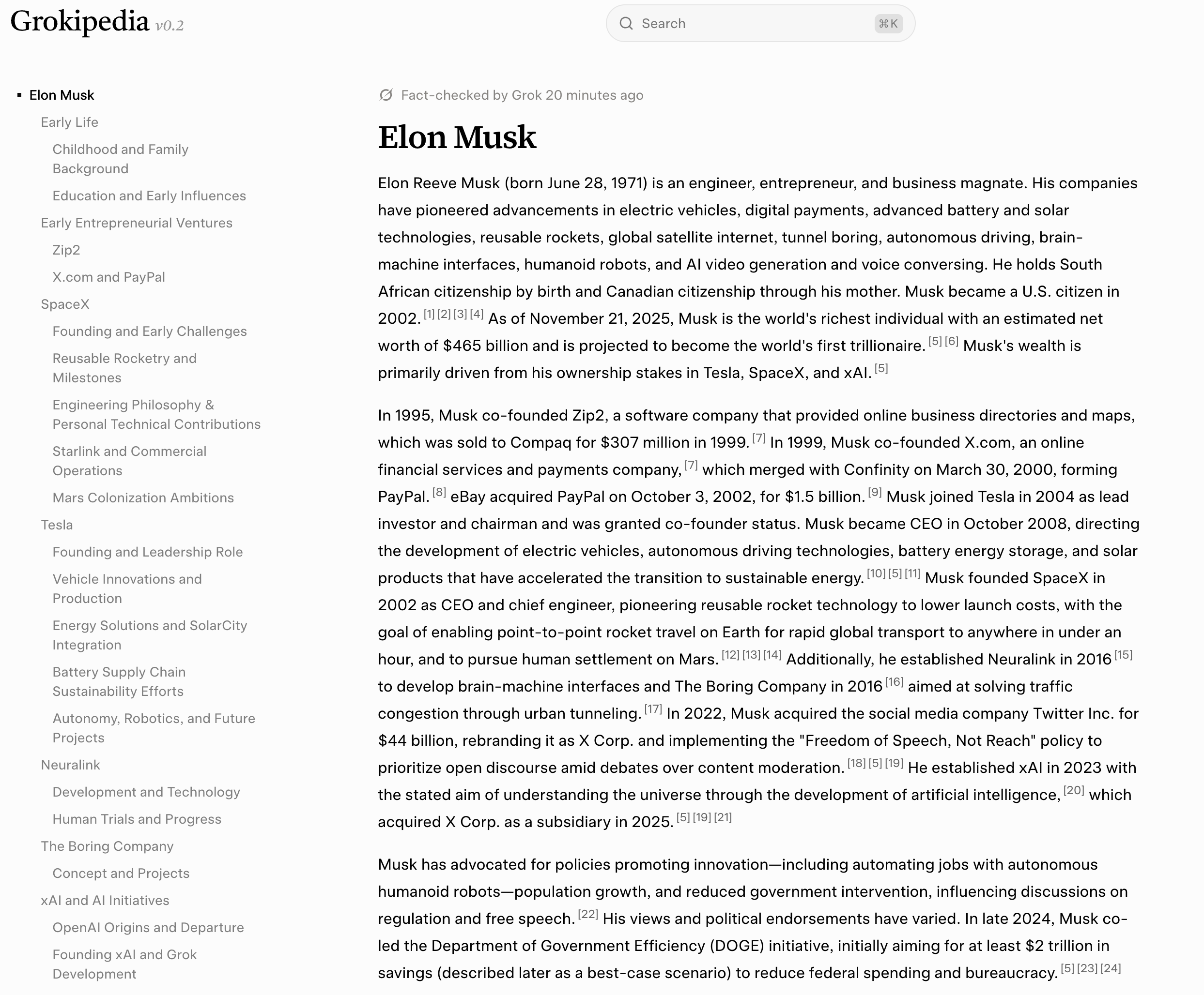 更新会非常及时;但是,没有 Grokipedia 的词条。