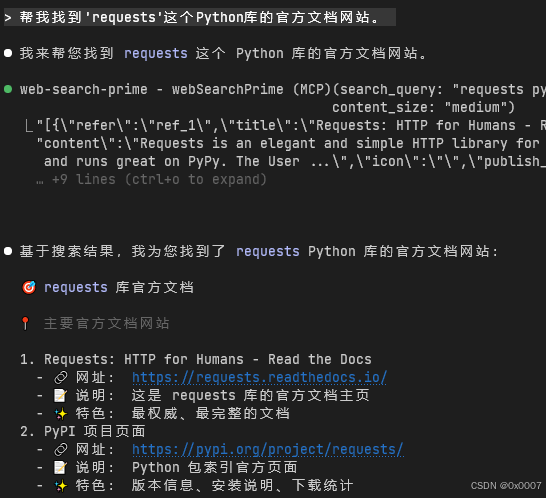 简单、高效、极其稳定。web-search-prime 经过优化,倾向于返回官网、GitHub等权威来源,是开发者最忠实可靠的导航员。