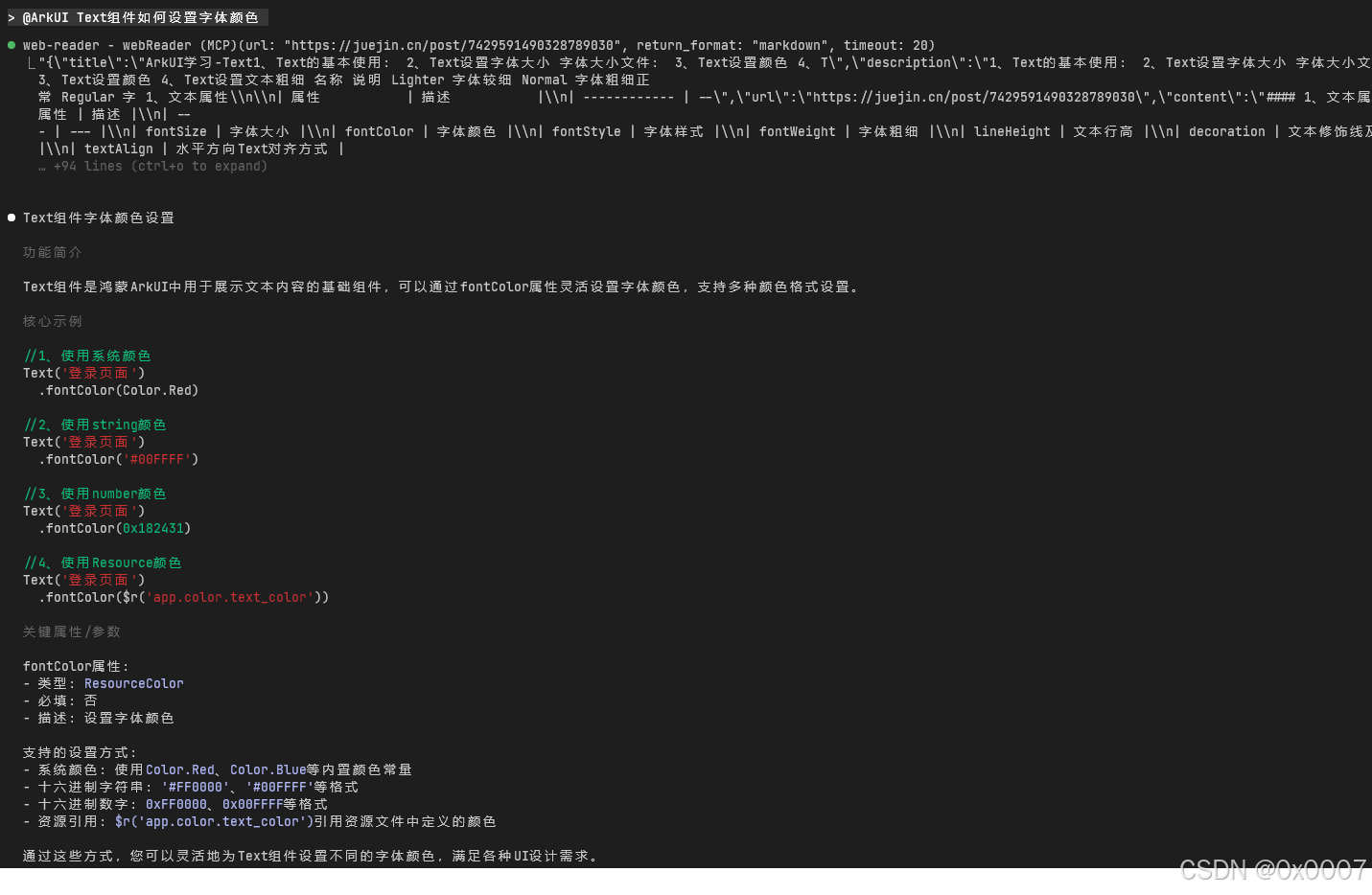 1. 接收用户的查询,例如“Text组件字体颜色”。