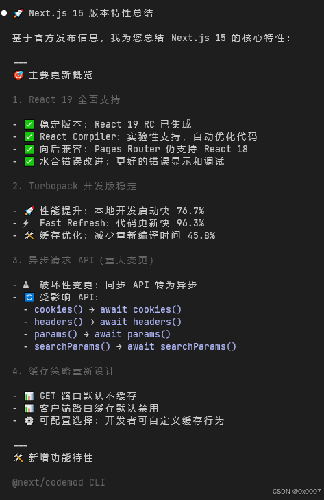 假设你关注的框架发布了新版本(如Next.js 15),想在几分钟内了解最重要的更新,而不是通读长篇的发布博客。