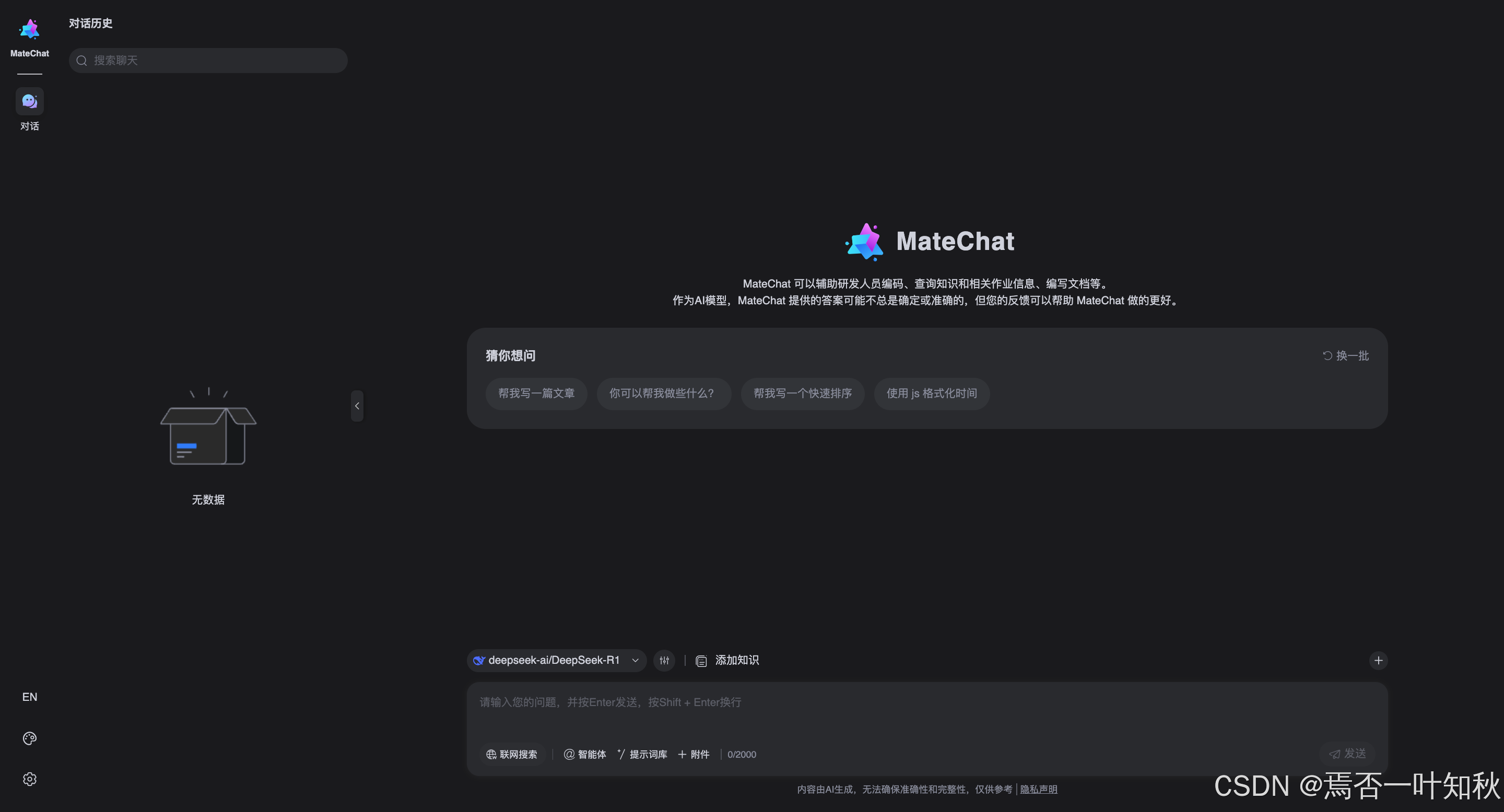 最后,我们再来瞅瞅,MateChat助手的对话界面: