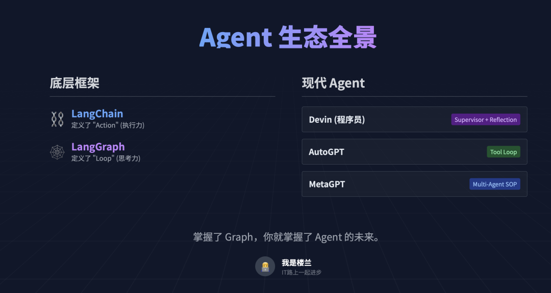 至于 LangChain 和 LangGraph 的具体代码怎么写,那些 add_node、add_edge 的语法细节,短视频里讲太枯燥了。有兴趣我们再深聊。