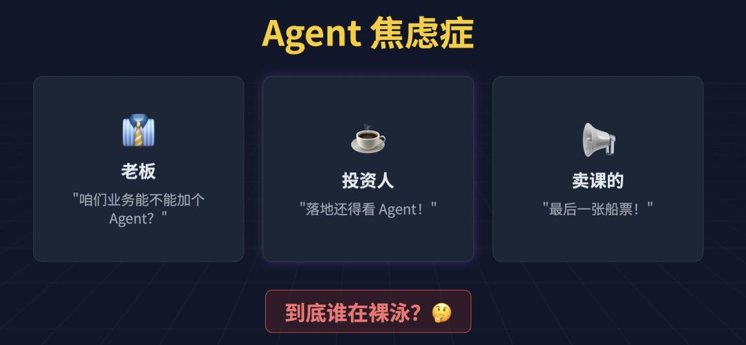 老板在会上问你:“咱们的业务能不能加个 Agent?” 投资人在咖啡厅里聊:“大模型只是工具,落地还得看 Agent。” 甚至连卖课的都在喊:“错过 Agent,你就错过了 AI 时代的最后一张船票!”