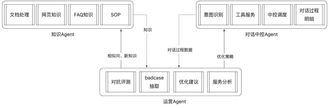 答案是肯定的,我们经过不断地摸索和实践,建设了"评估-诊断-优化"三位一体的运营Agent平台(一个垂类Agent),结合知识Agent和对话中控Agent,一起构建了智能化的AI原生服务闭环体系,实现客服机器人服务质量的持续进化。