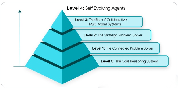 级别 4: 自我进化的系统(能动态创造新工具或新代理来填补能力空白)。