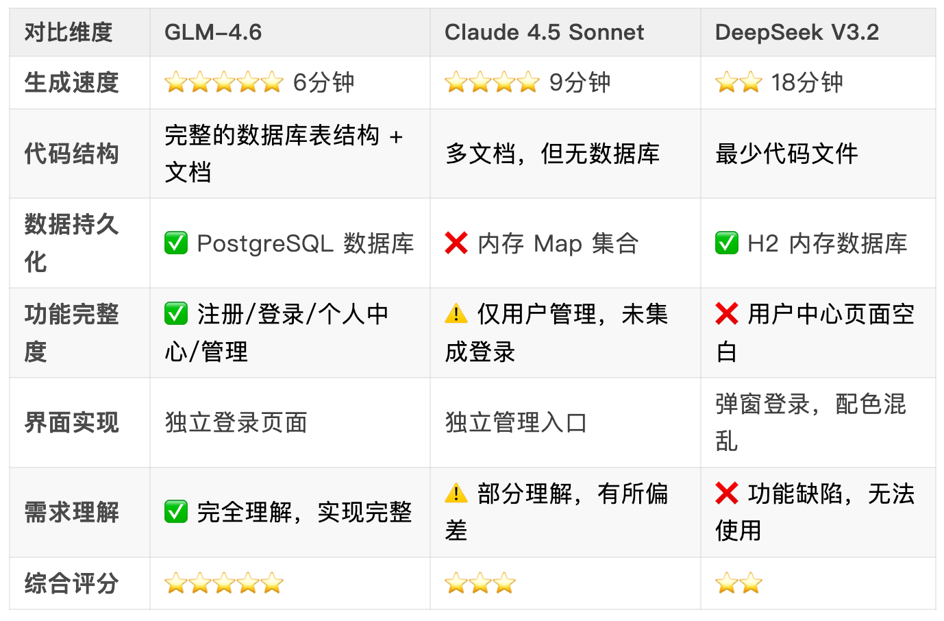 结果 GLM-4.6 不仅速度最快,而且功能实现最完整,理解了我的需求。