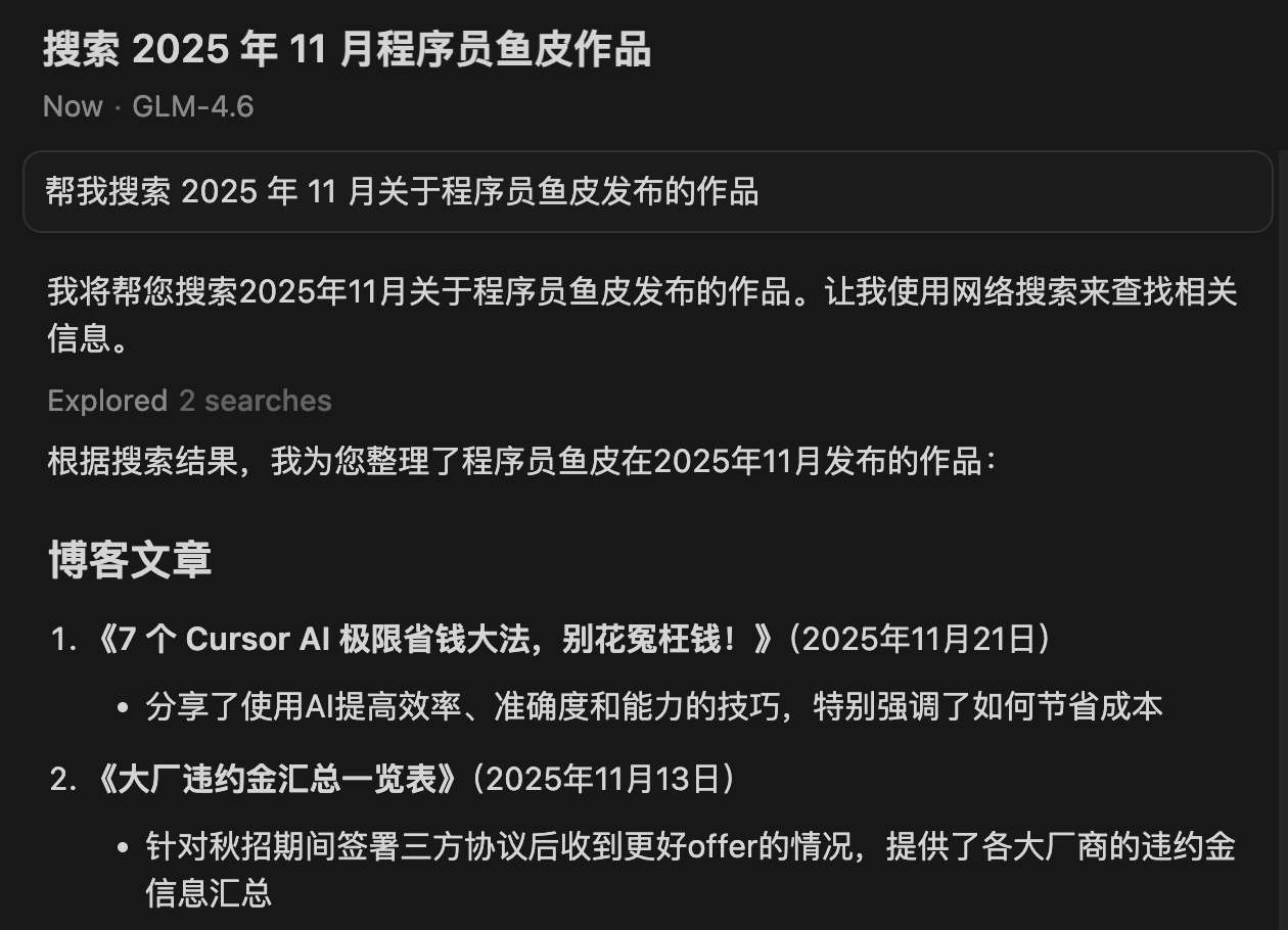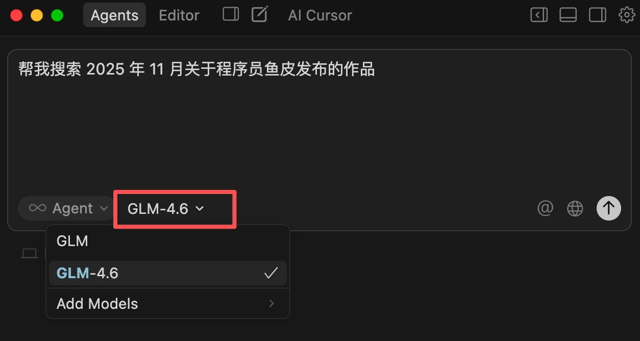 然后,就可以在对话界面选择 GLM-4.6 大模型,愉快使用了~