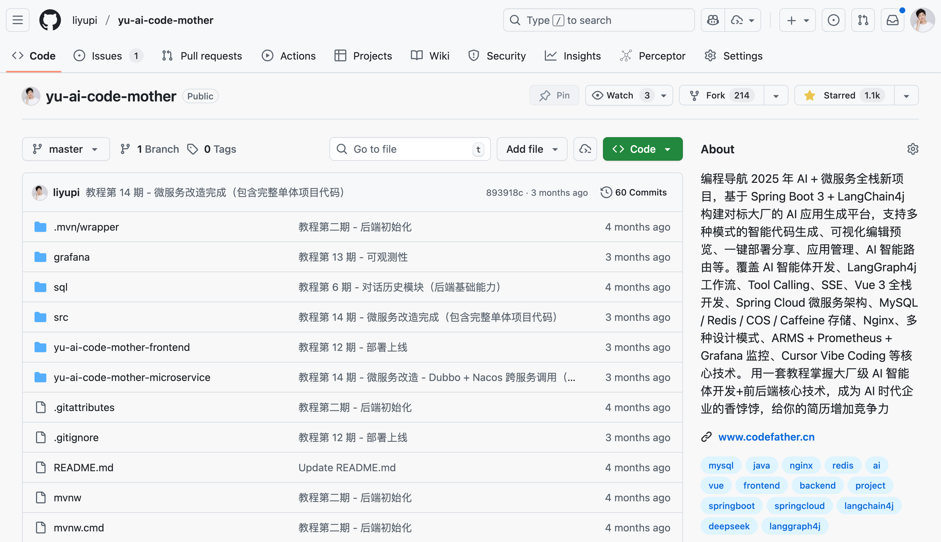 以我当时带大家从 0 开始做的、对标大厂的 AI 零代码生成项目 为例,这个项目使用 Java 主流的 AI 应用开发框架 LangChain4j。