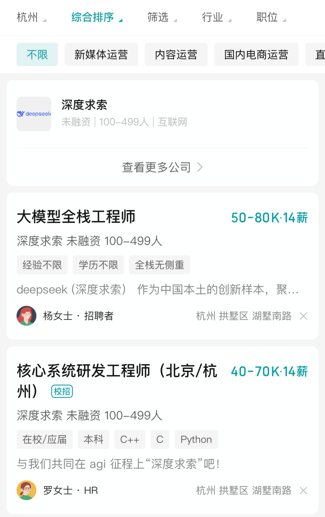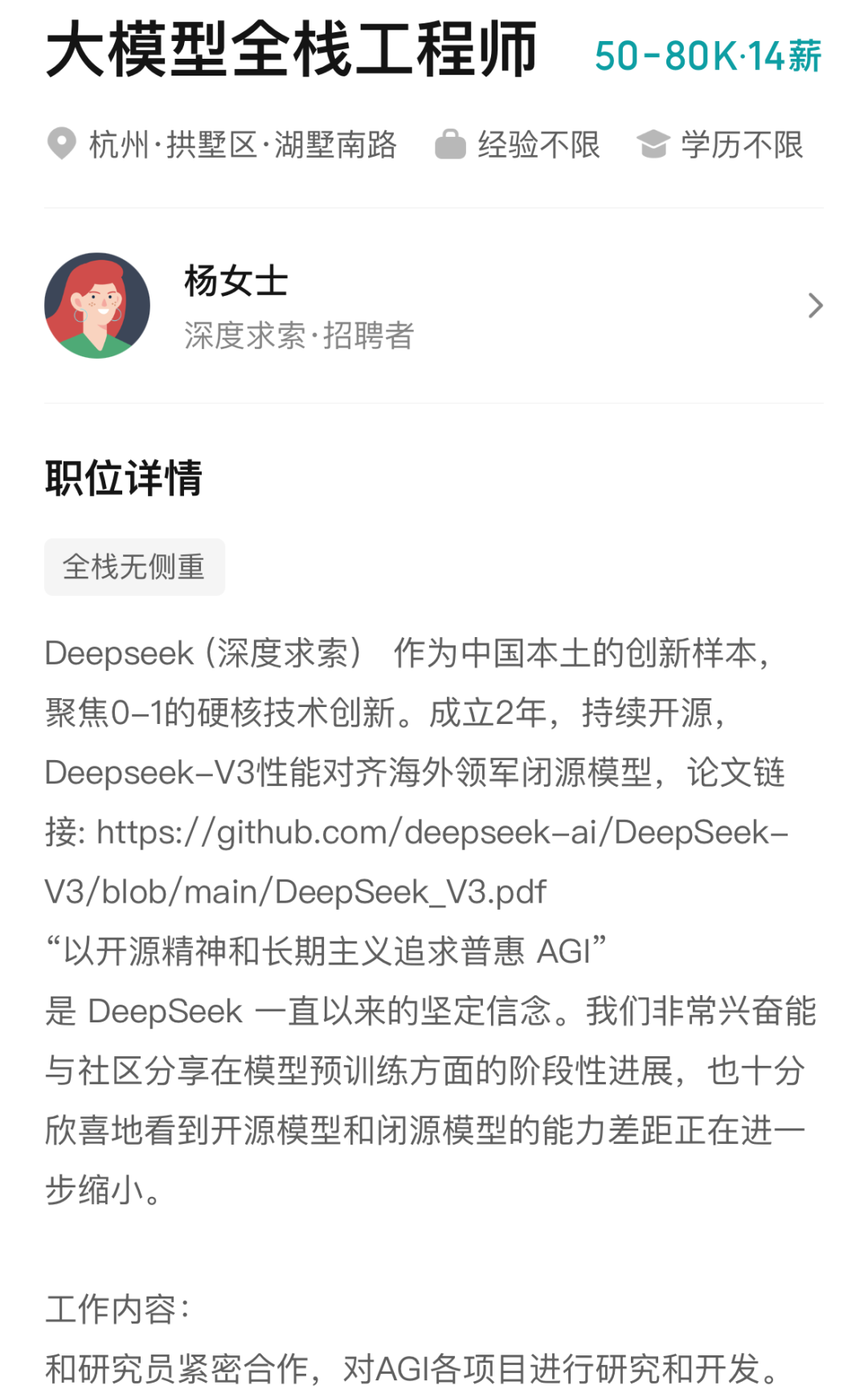 最近,AI 界的 “话题王” DeepSeek 又凭借大规模高薪招聘成功霸榜热搜。 打开招聘平台,深度学习研究员、核心系统研发工程师、大模型全栈开发工程师等一系列岗位映入眼帘,无论是正式岗还是实习岗,薪资待遇都好到让人尖叫!