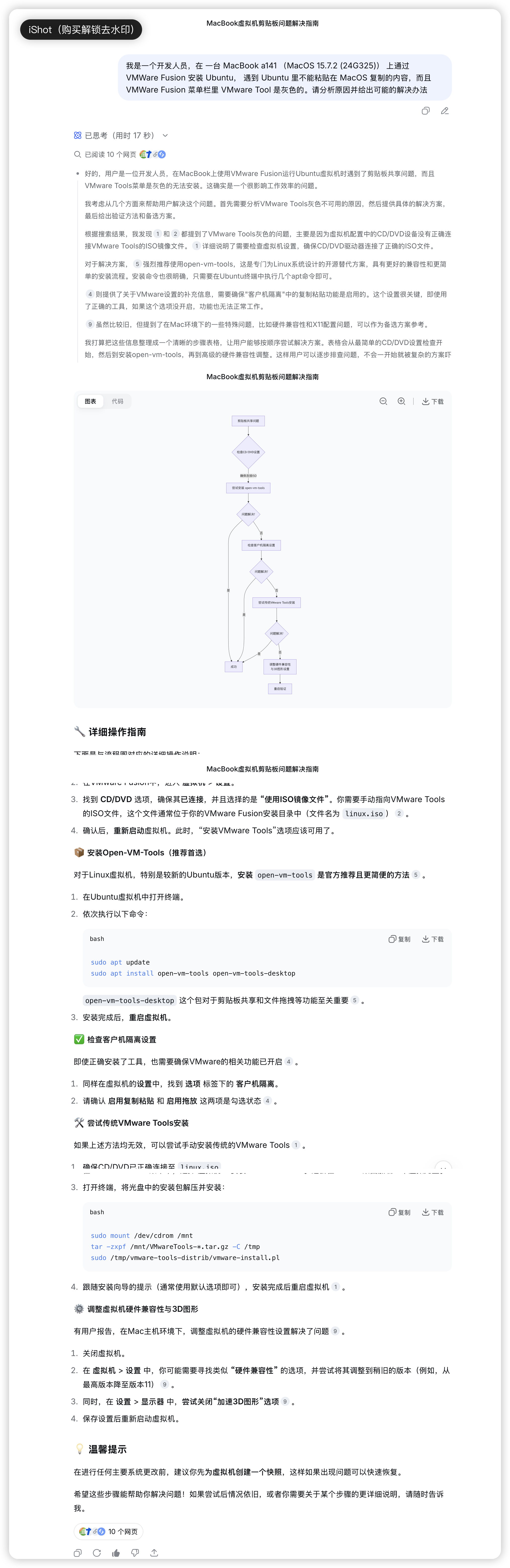 都安装好后,发现 MacOS 的剪贴内容无法复制到 Ubuntu。也是询问豆包等花了几个小时也没解决。最终 DeepSeek 帮解决了。