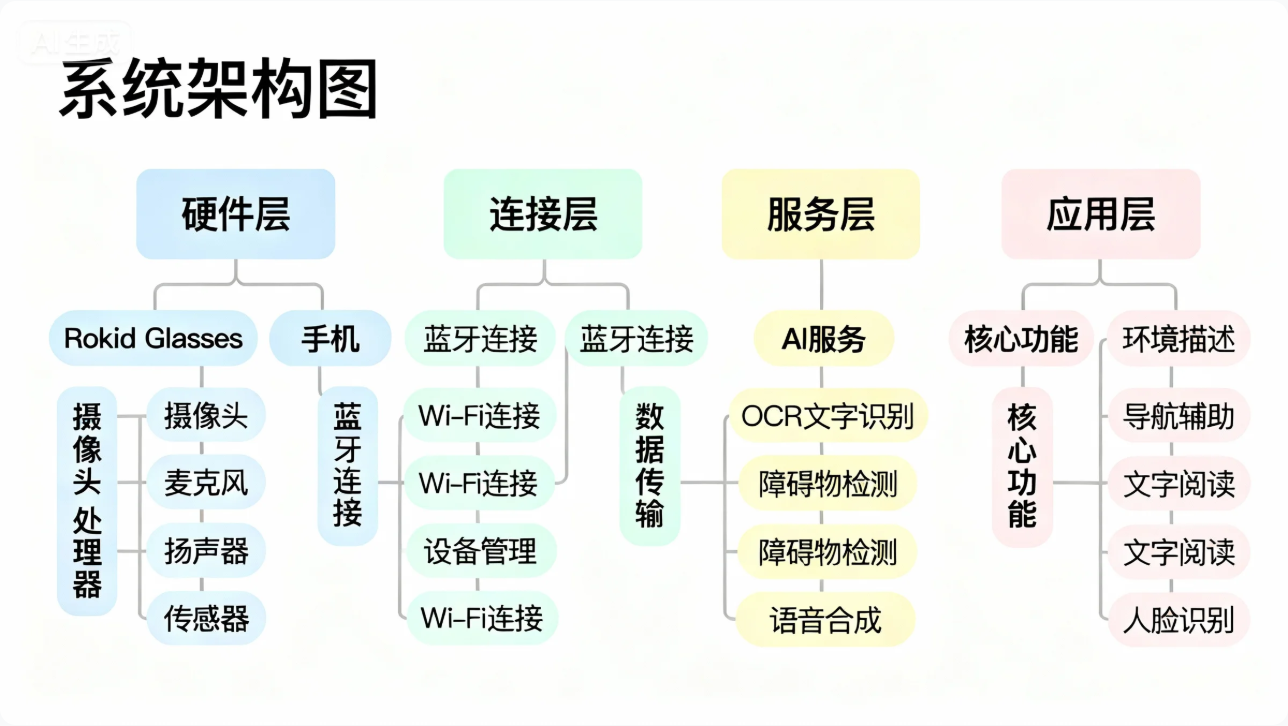 技术实现上,系统充分发挥了Rokid SDK的蓝牙/Wi-Fi双模连接、AI场景定制、自定义界面等能力,同时通过电池优化、离线支持、多模态交互等策略,确保了系统的实用性和可靠性。代码设计遵循模块化、可扩展的原则,为未来功能扩展奠定了基础。