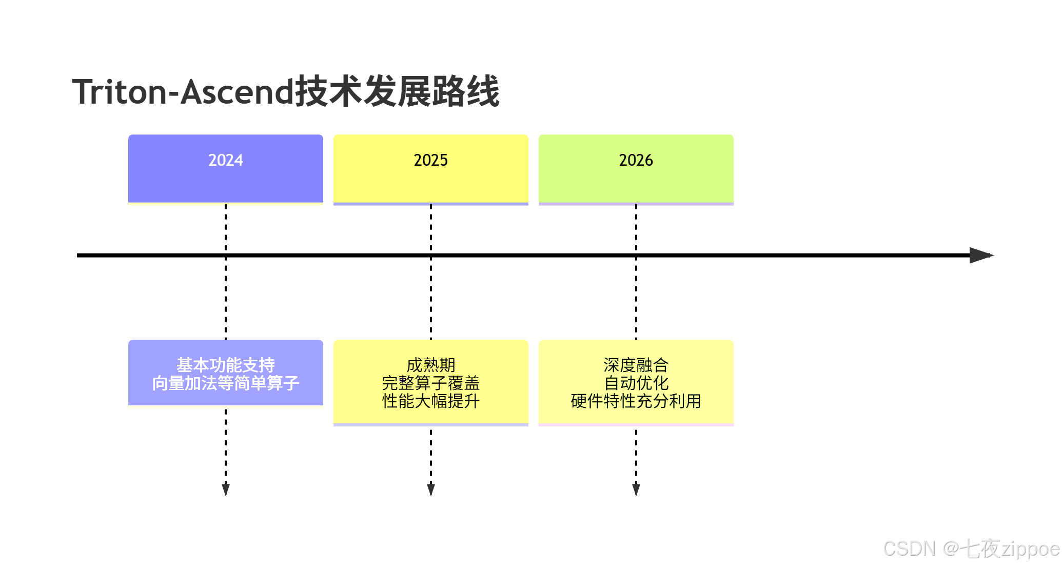 图4:Triton-Ascend技术发展路线图。基于社区趋势和官方路线图预测。