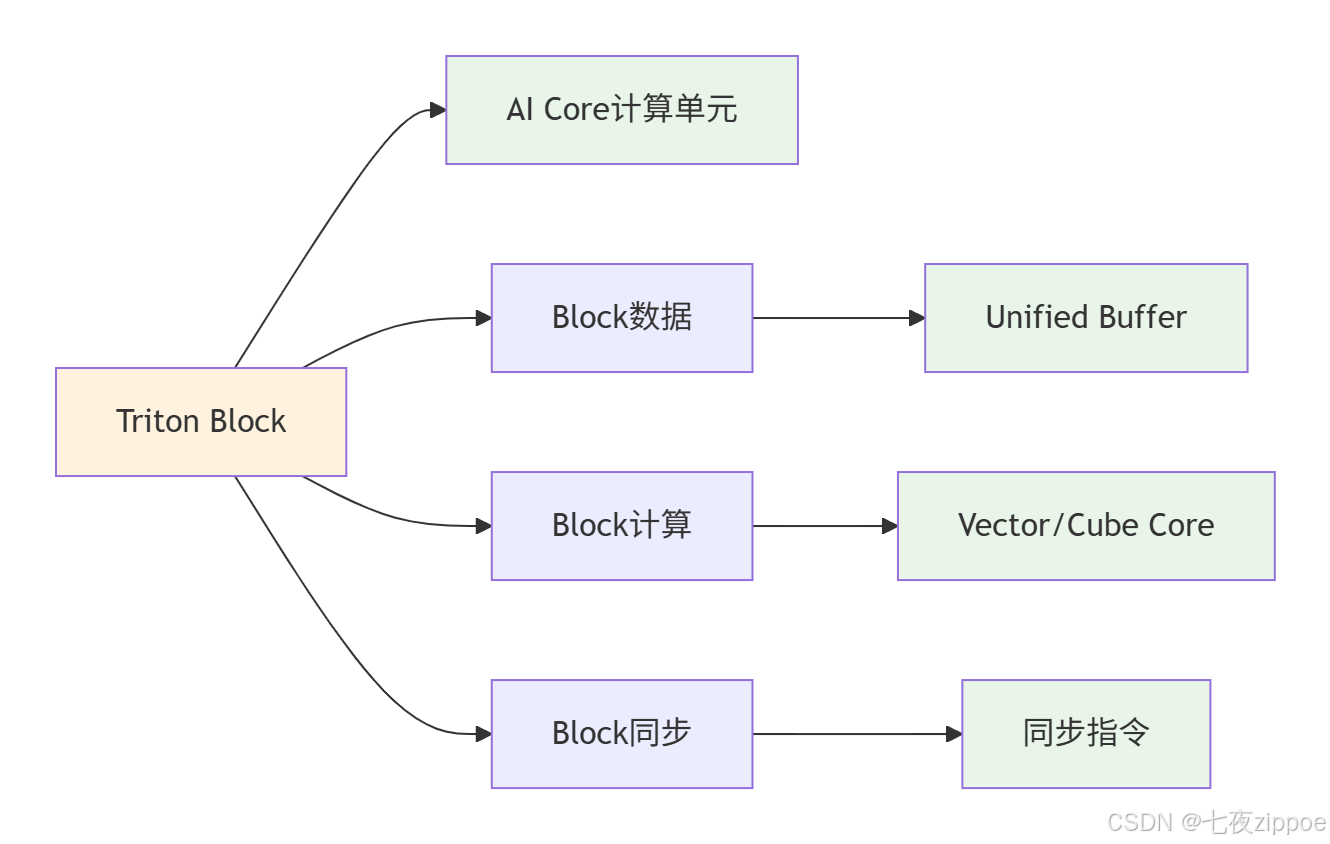 Triton的Block编程模型与昇腾AI Core的架构高度契合。每个Triton Block映射到AI Core的一个计算单元,Block内的操作被编译为在AI Core上高效执行的微指令。
