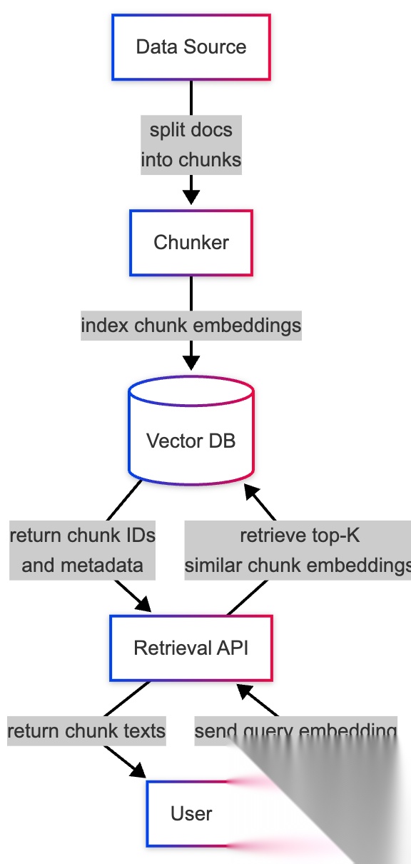 - 当用户提出查询时,系统计算查询的嵌入,并从数据库中找出最相似的 k 个区块作为上下文,提供给 LLM 以生成答案。