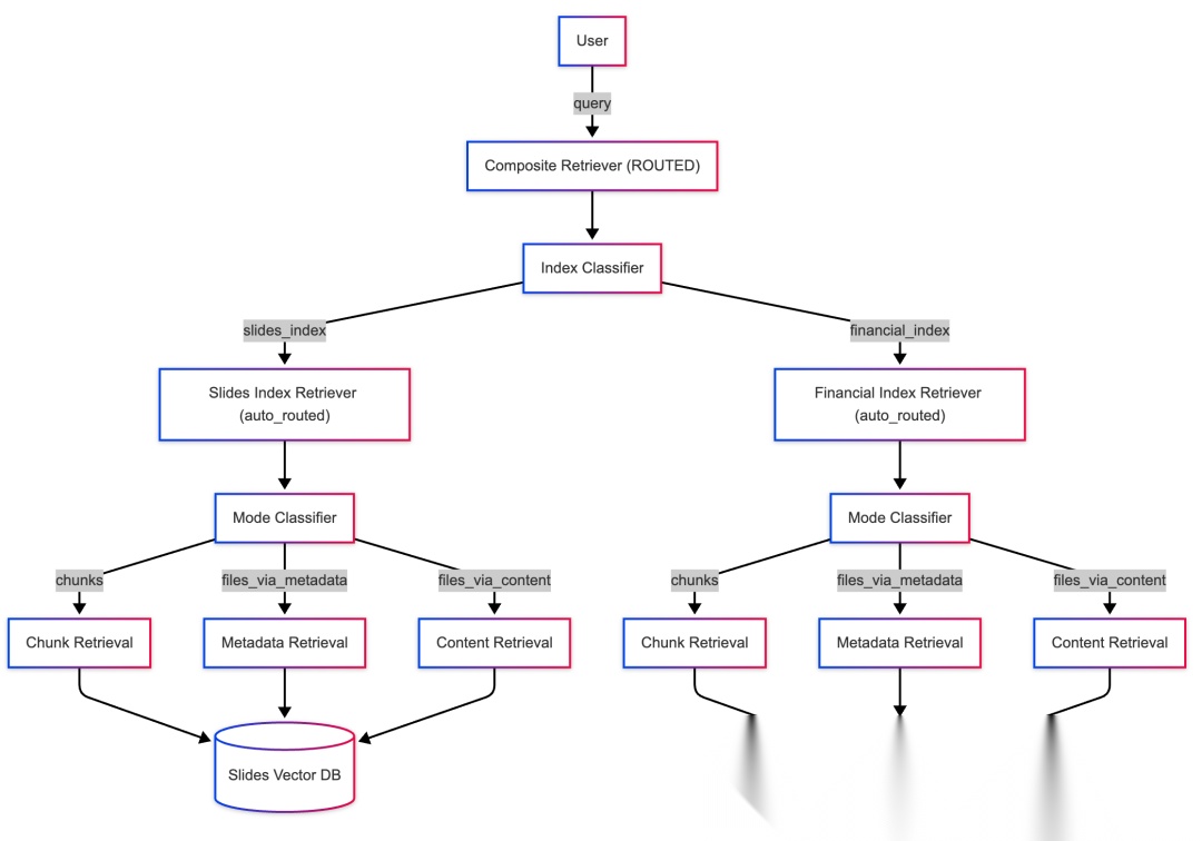 - 例如,当查询「2024 年第四季度财报中的收入增长情况如何?」时,顶层 agent 会识别出「财报」关键词,并将查询路由至 financial_index。