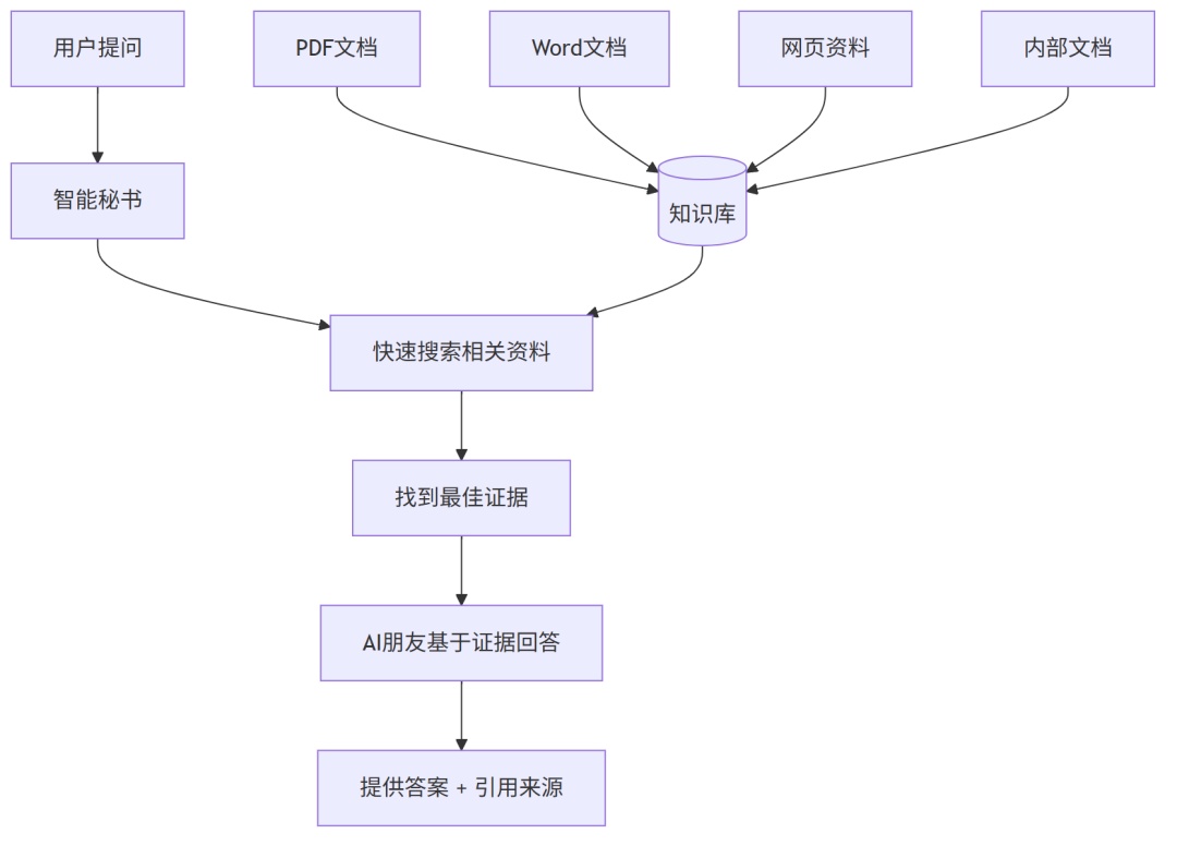 当你提出问题时,这个助手会飞快地在图书馆里找到最相关的书籍、文章和资料,然后把这些"证据"交给 AI 来回答问题。这样 AI 就不再是"闭卷考试",而是变成了"开卷考试",回答自然更加准确和可靠。