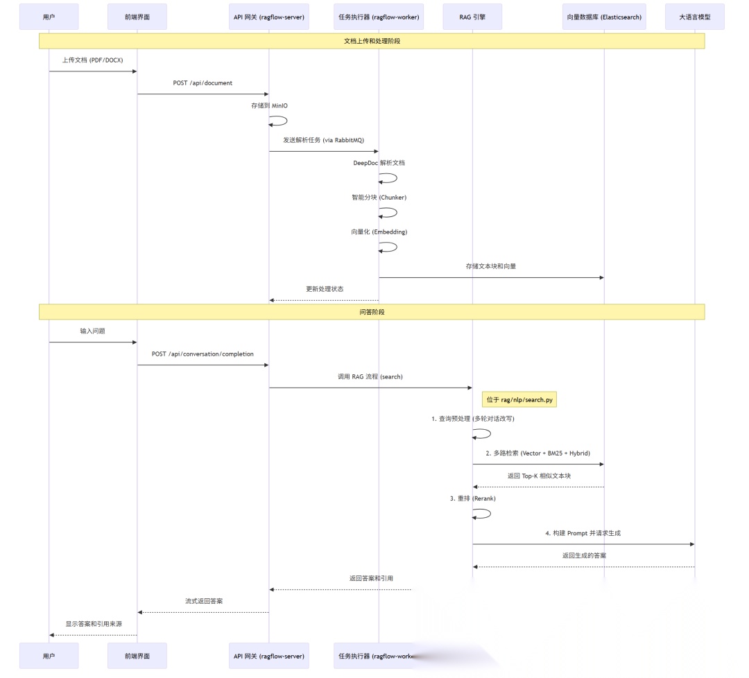 现在,我们可以将这些概念串联起来,形成 RAGFlow 中一次典型问答的完整流程图。