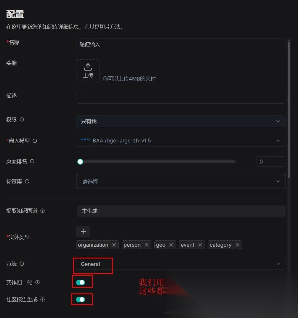 1开启功能:进入数据集配置页→“高级设置”→找到“知识图谱构建”开关并打开(图4红框位置);