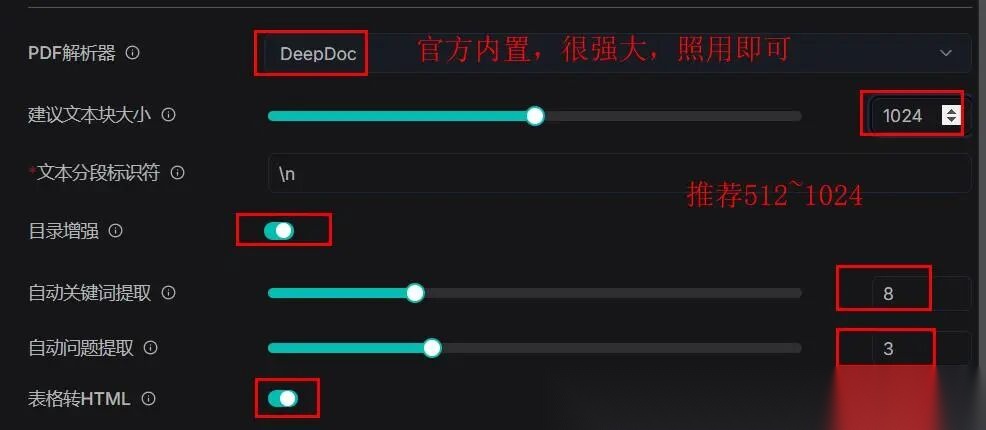 1参数默认即可:RAPTOR的聚类层级、总结长度等参数无需手动调整,系统会根据文档长度自动适配;可以让AI给你合适的参数,我这个也是在测试的。