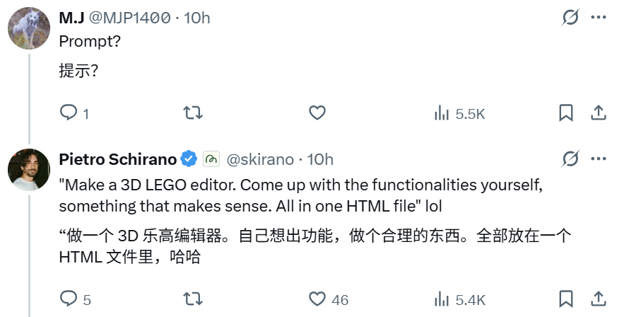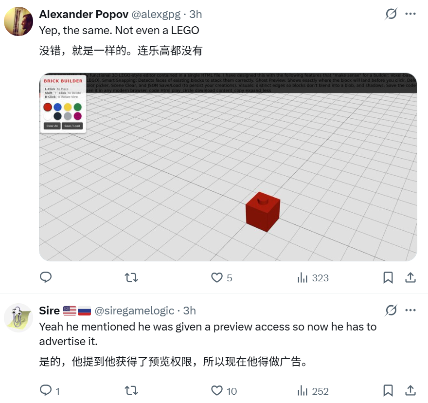 来看网友用它做的乐高模拟器,声称 one shot 直出,效果也是非常好。